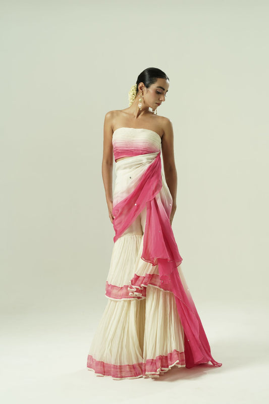 Ombre Draped Layered Sharara Set