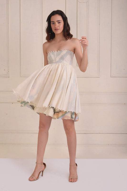 Printed Smocking Tube Dress With Sharara Set