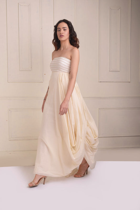 Draped gown with embroidered stripes