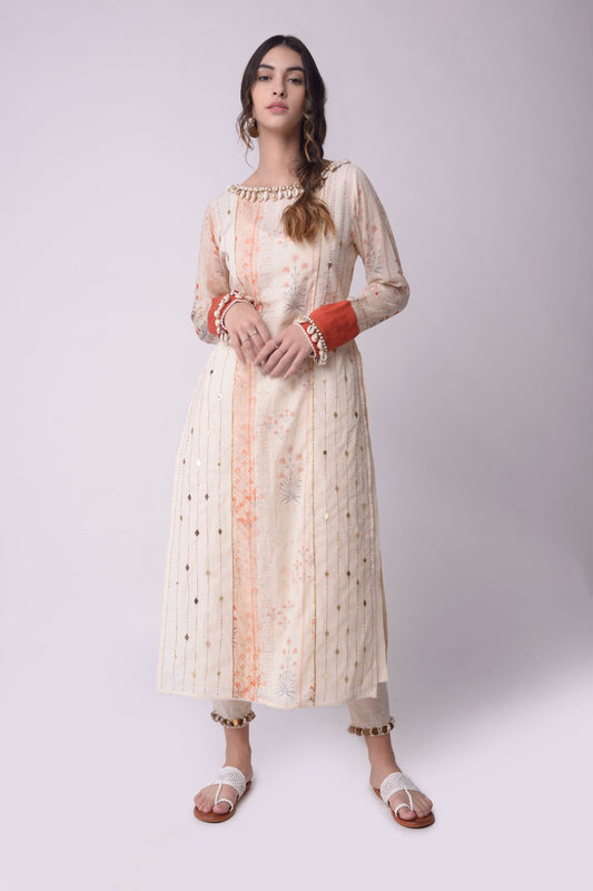 Printed Panel Straight Kurta With Cropped Pants And Dupatta.