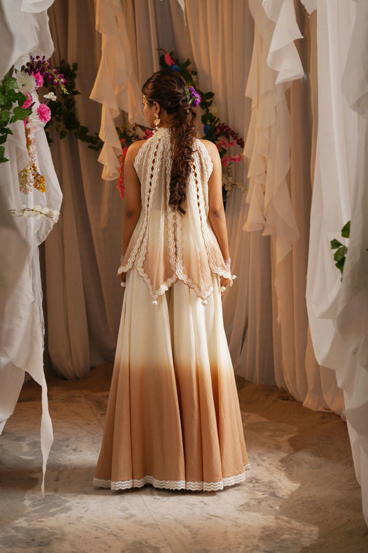 Ombre Jacket With Tie-dye Patchwork Bustier And Sharara