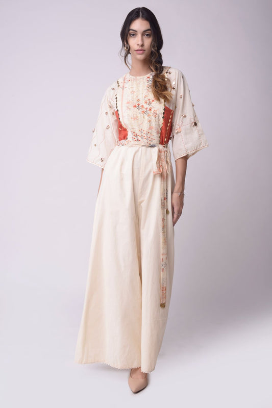 Draped Jumpsuit with Foil Printed Scarf Pallu