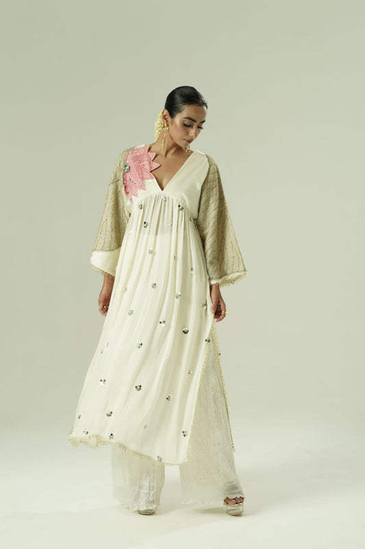 Foil Printed Straight Kaftan Kurta with Straight Beaded Pants