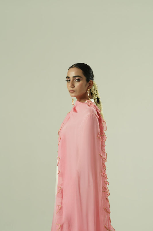 Vally Printed Kurta With Cropped Pants And Panelled Dupatta
