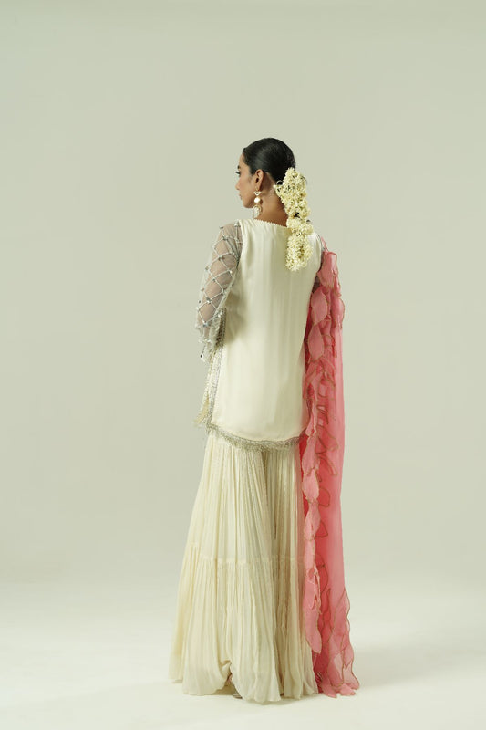 Foret Pearl Embroidered Tunic With Sharara And Style Dupatta