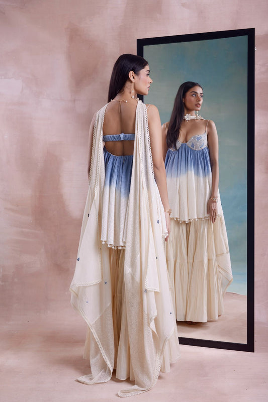 Ombre Beaded Bralette Tunic and Tiered Sharara