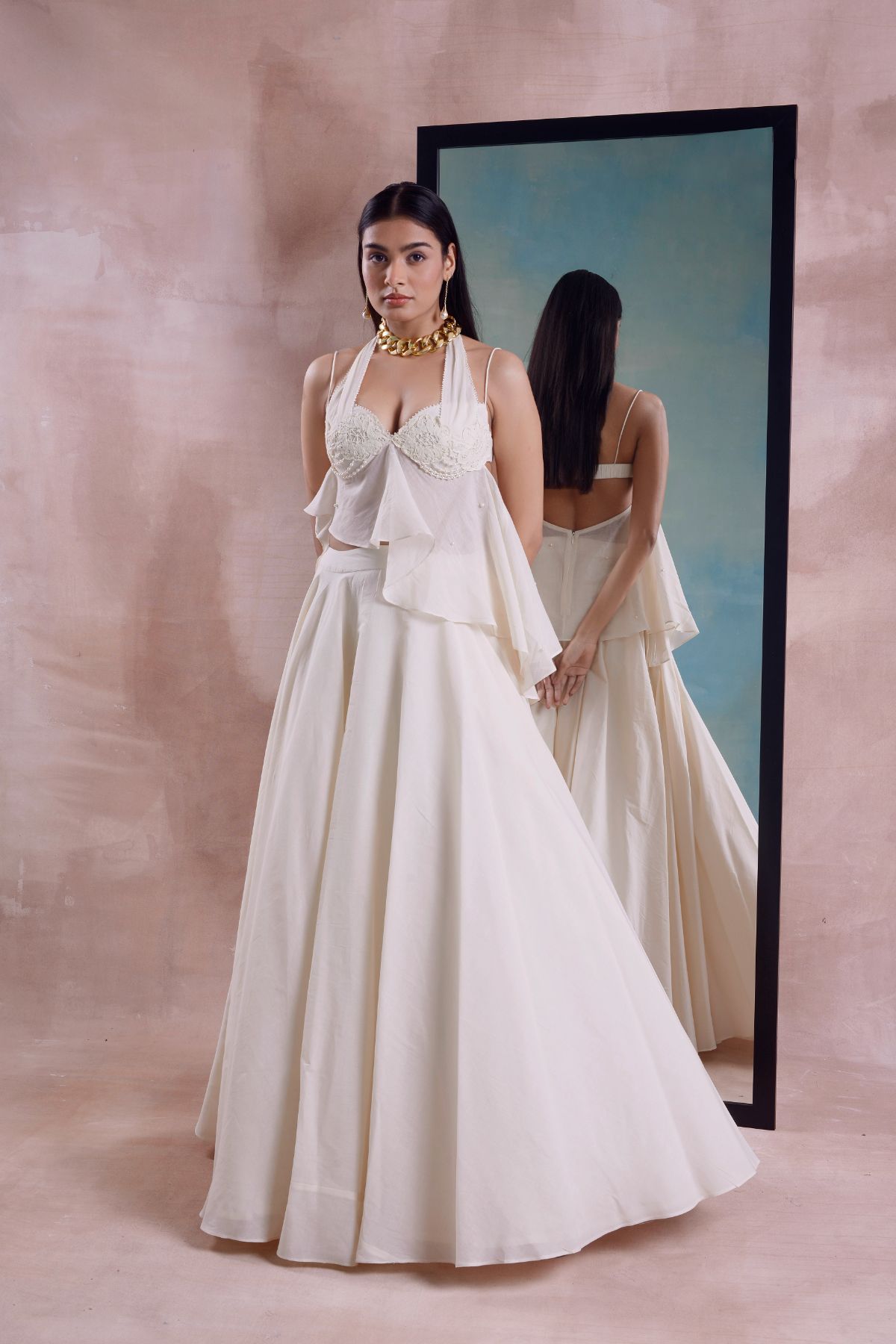 Beaded Floret Peplum Top and Lehenga Set