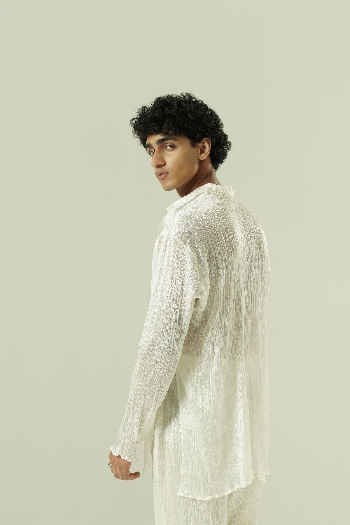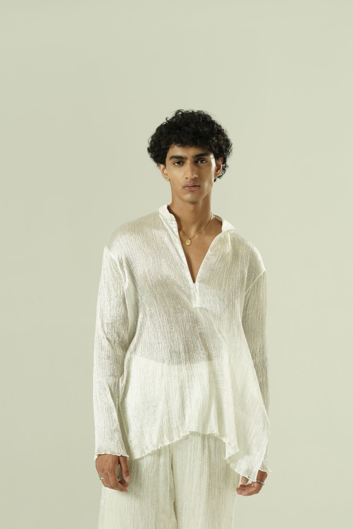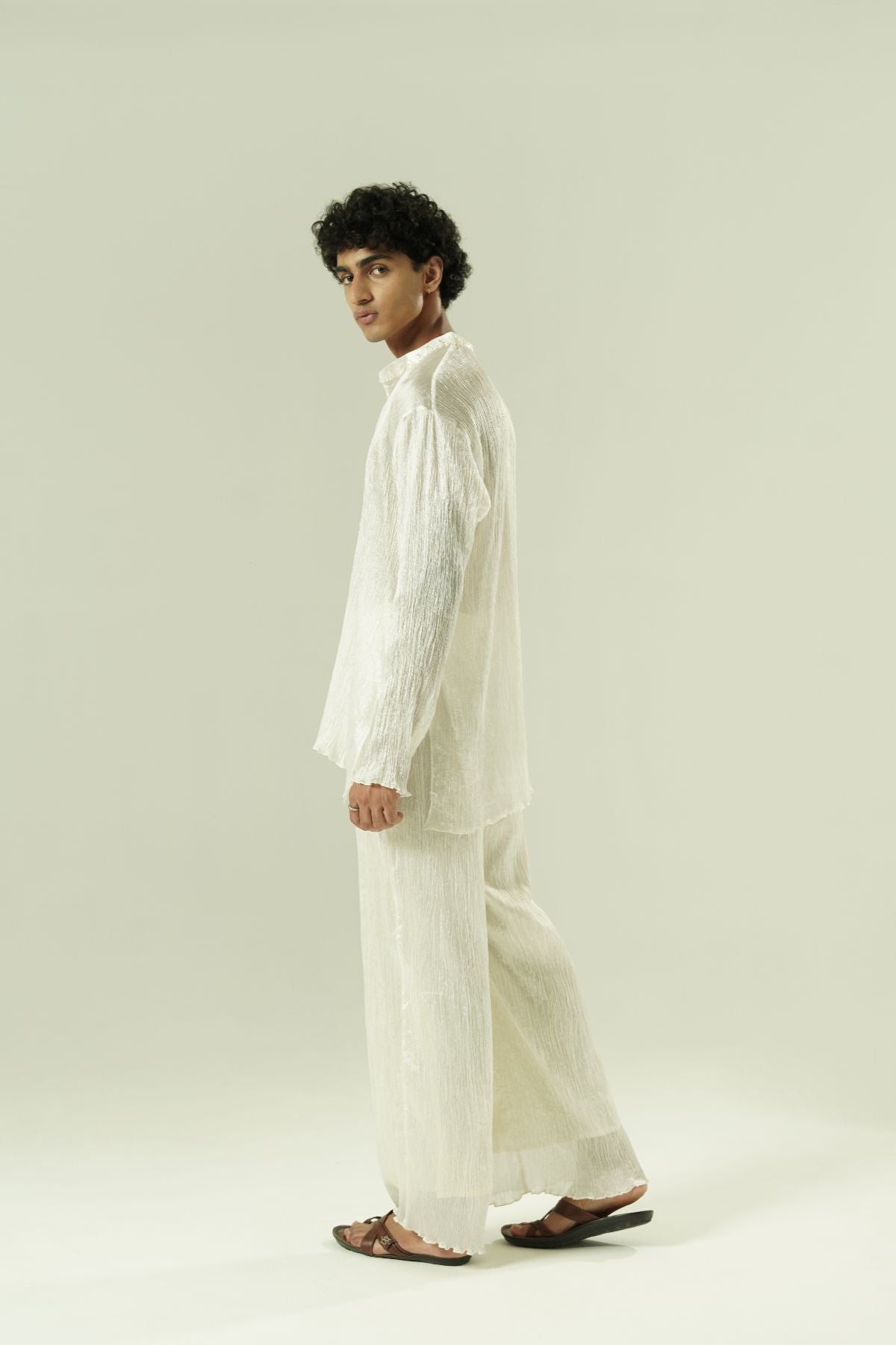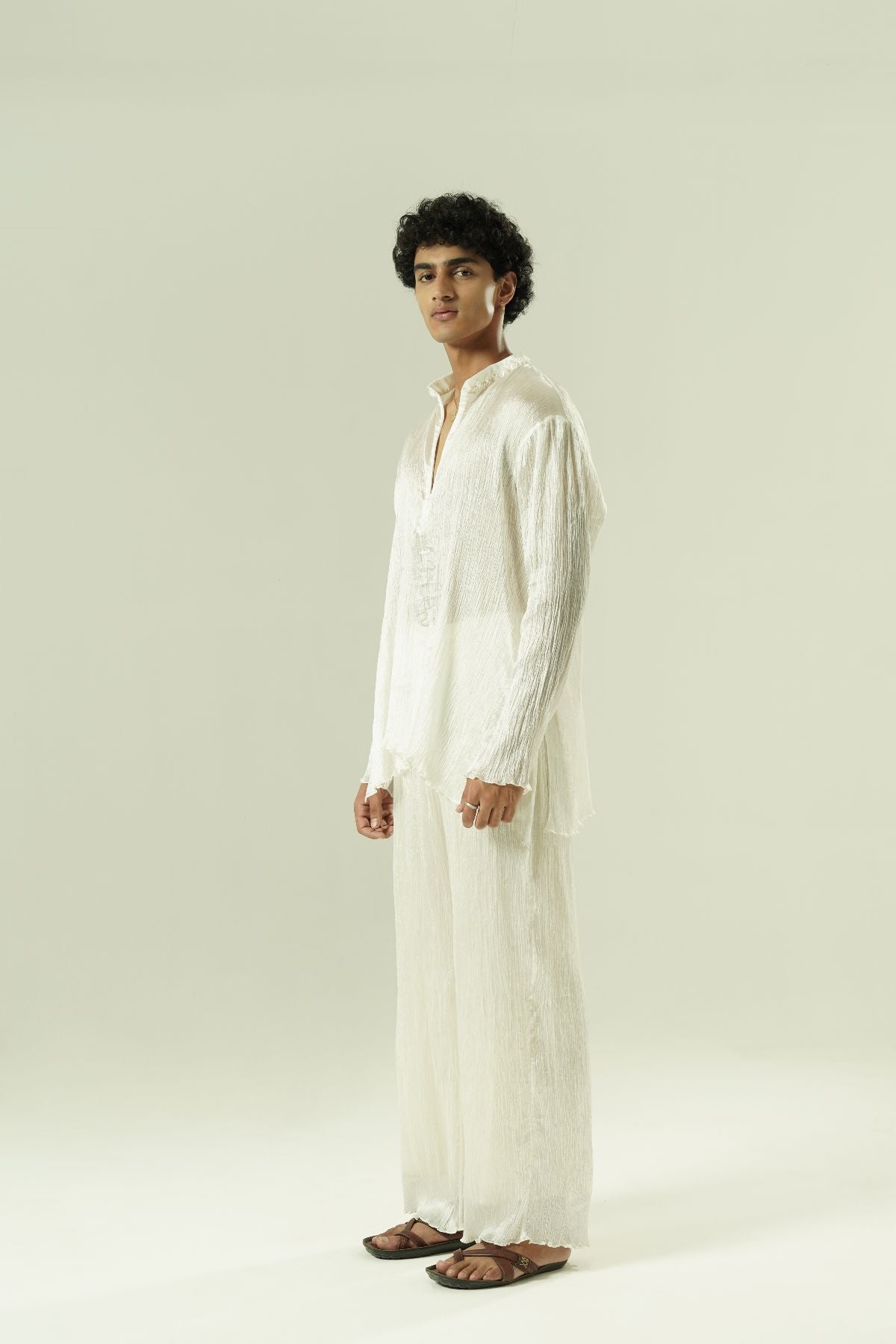 Crushed kurta and pants; beadwork on collar