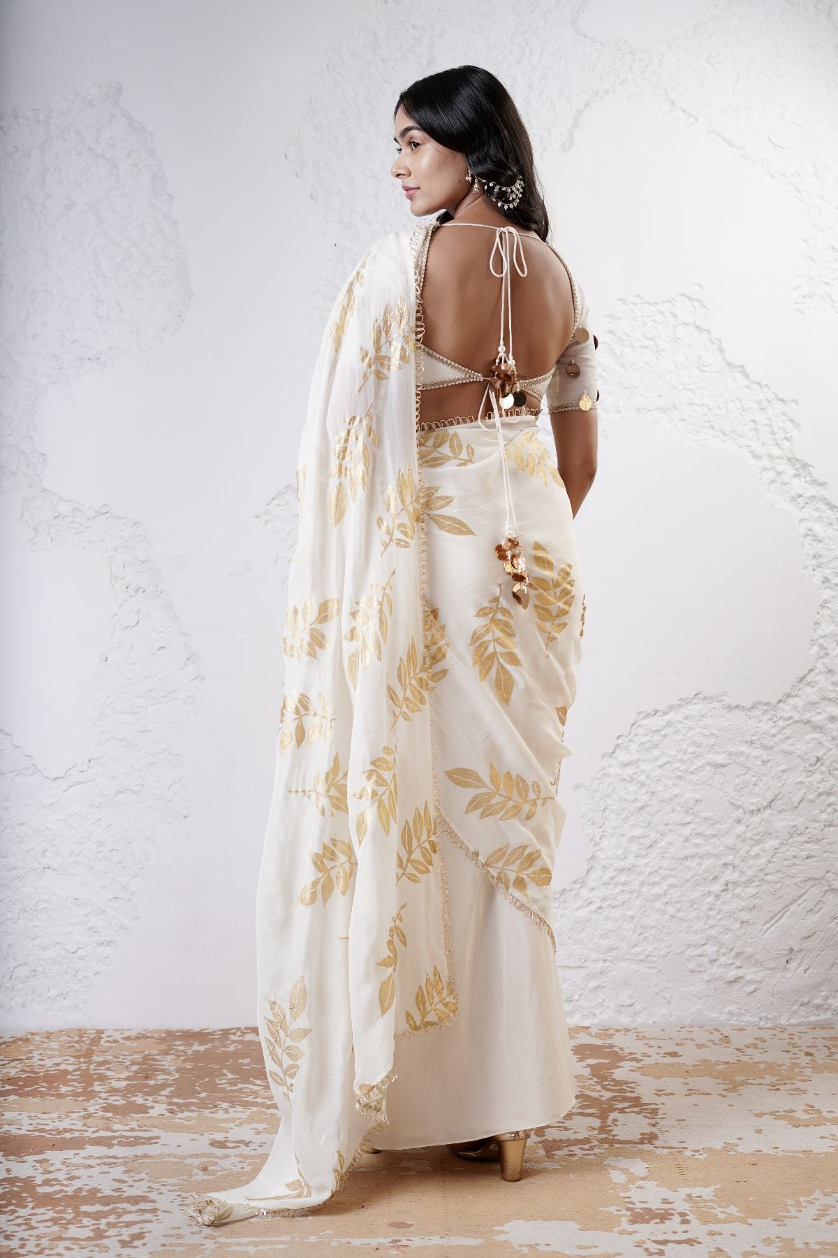 Foil Leaf Saree with Beaded Blouse