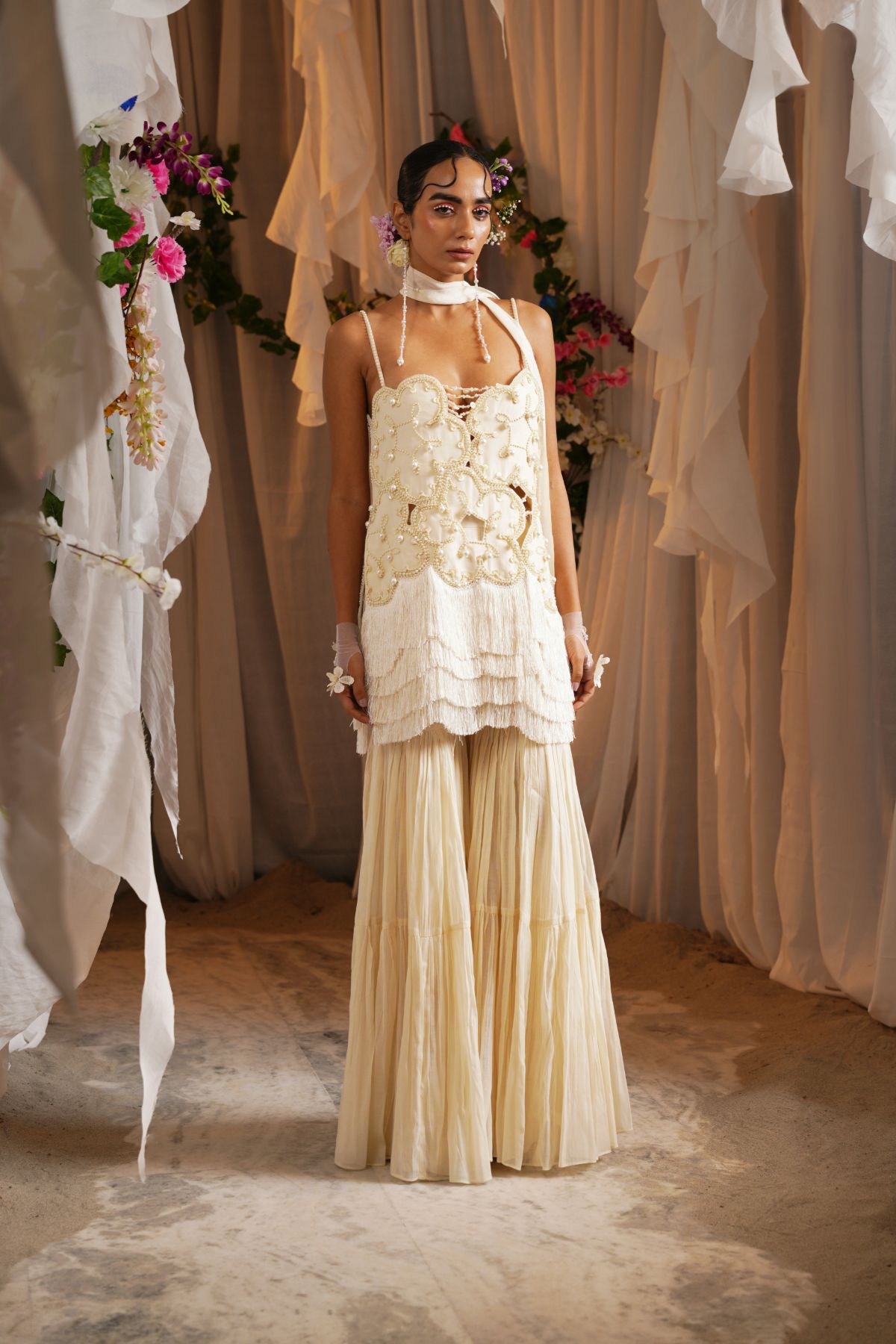 Foret Pearl Embroidered Tunic With Sharara And Style Dupatta