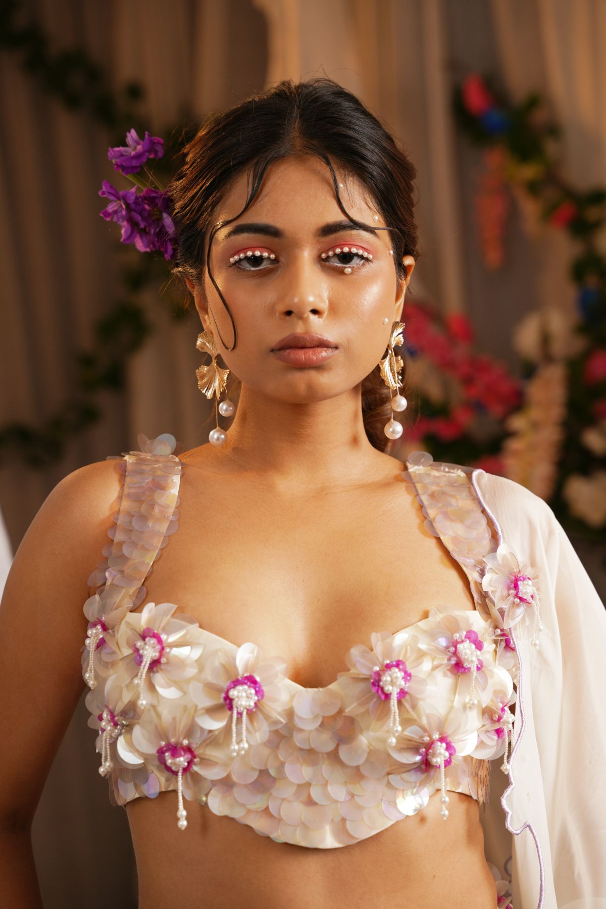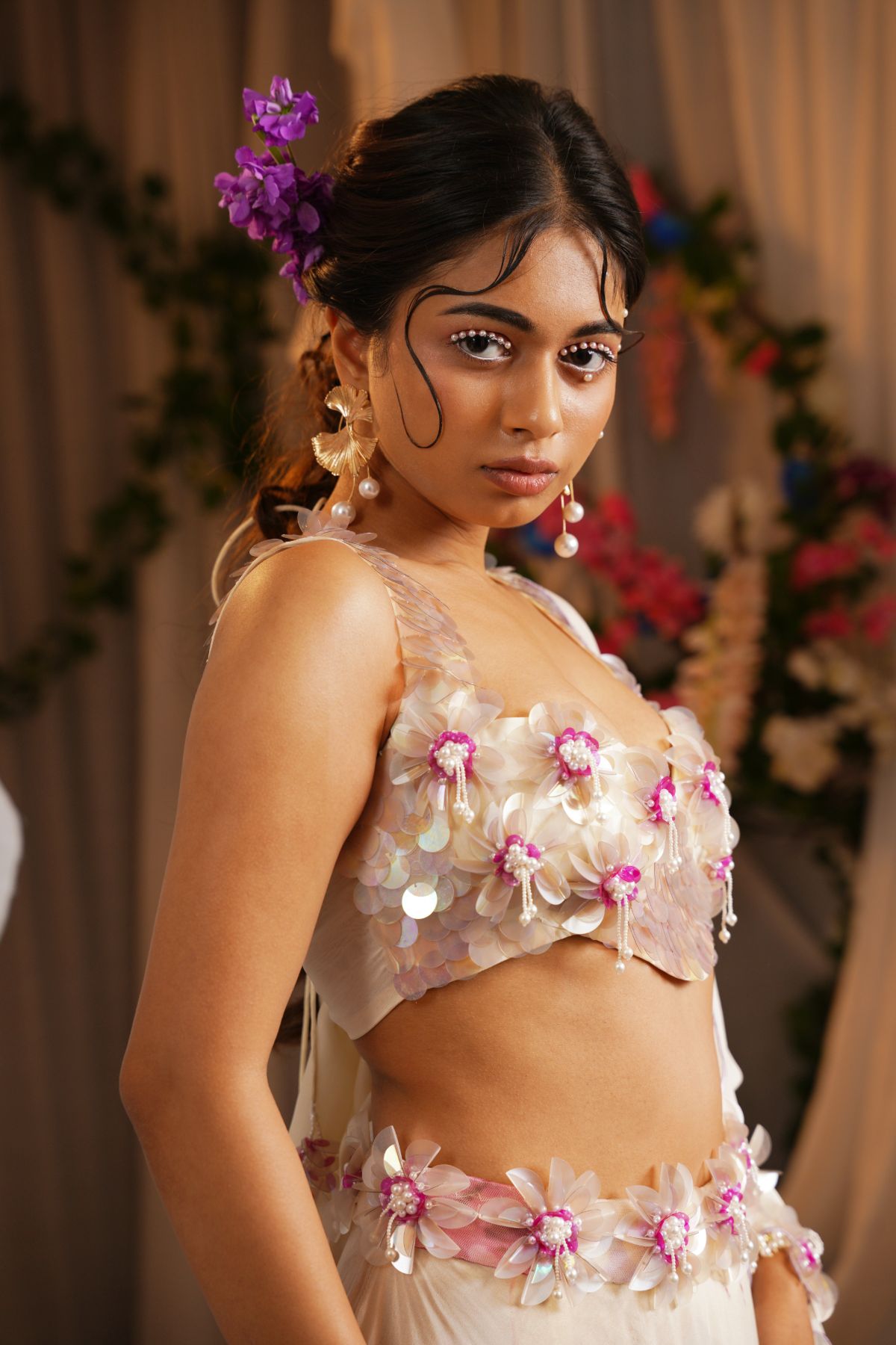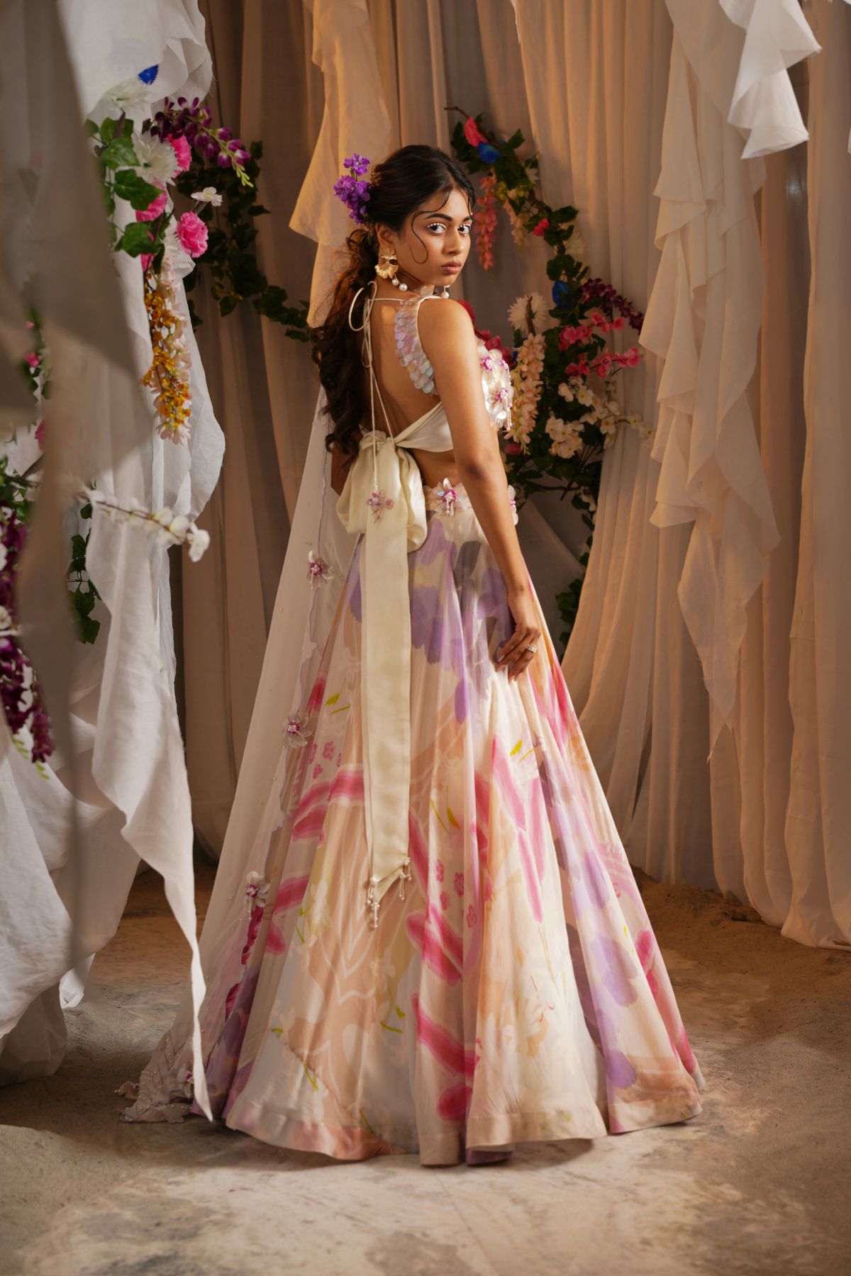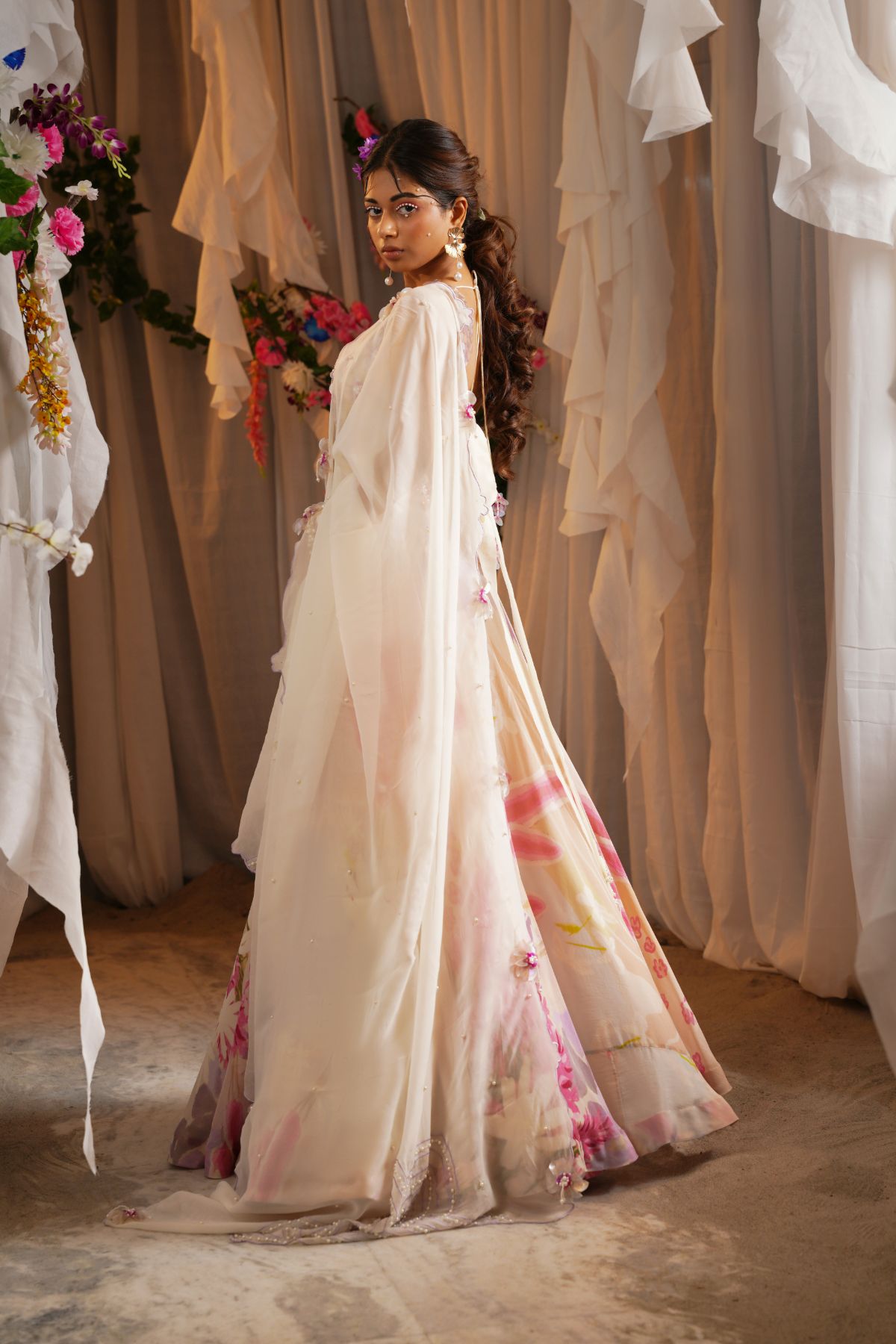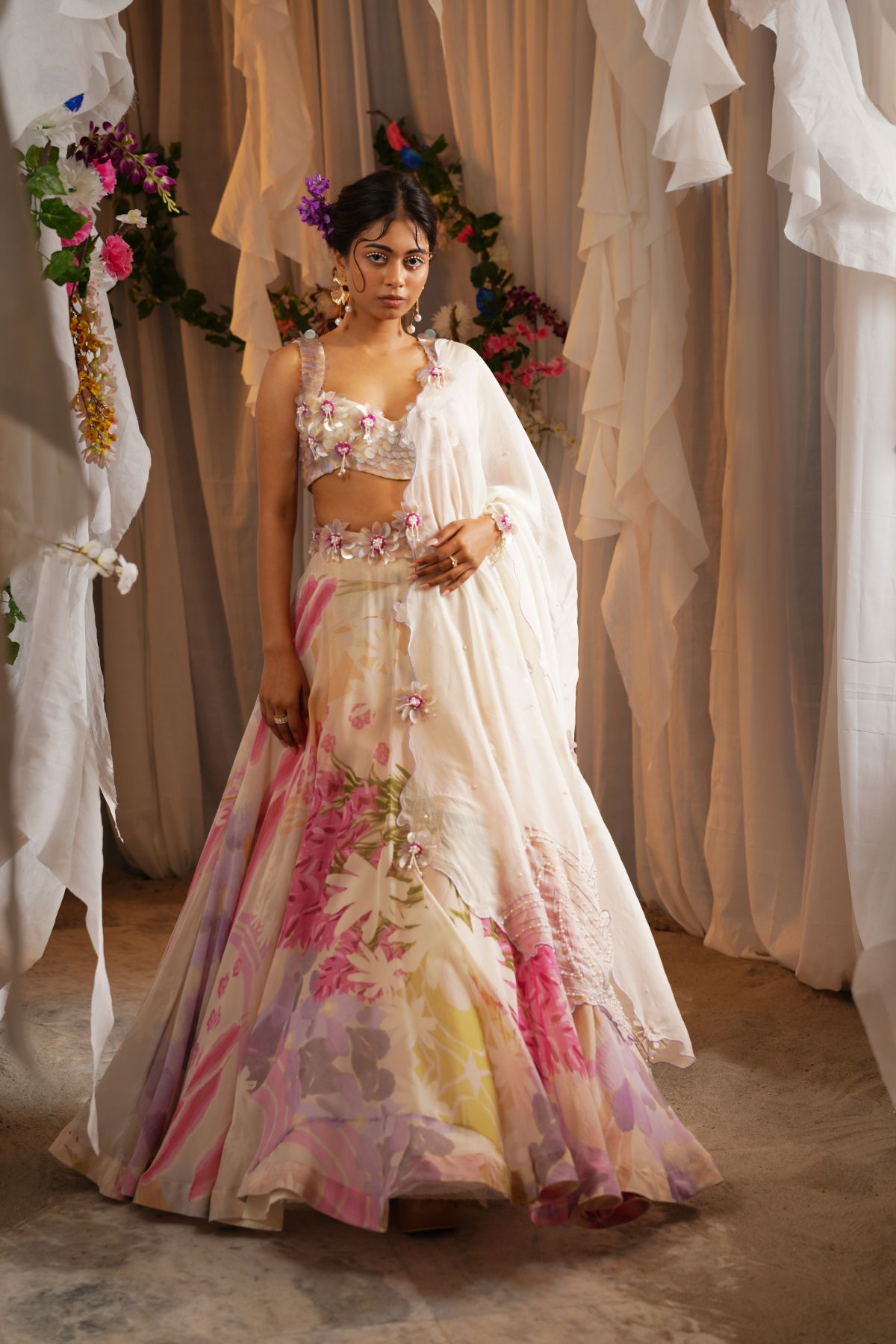 Garden Print Lehenga With Embroidered Blouse And Dupatta