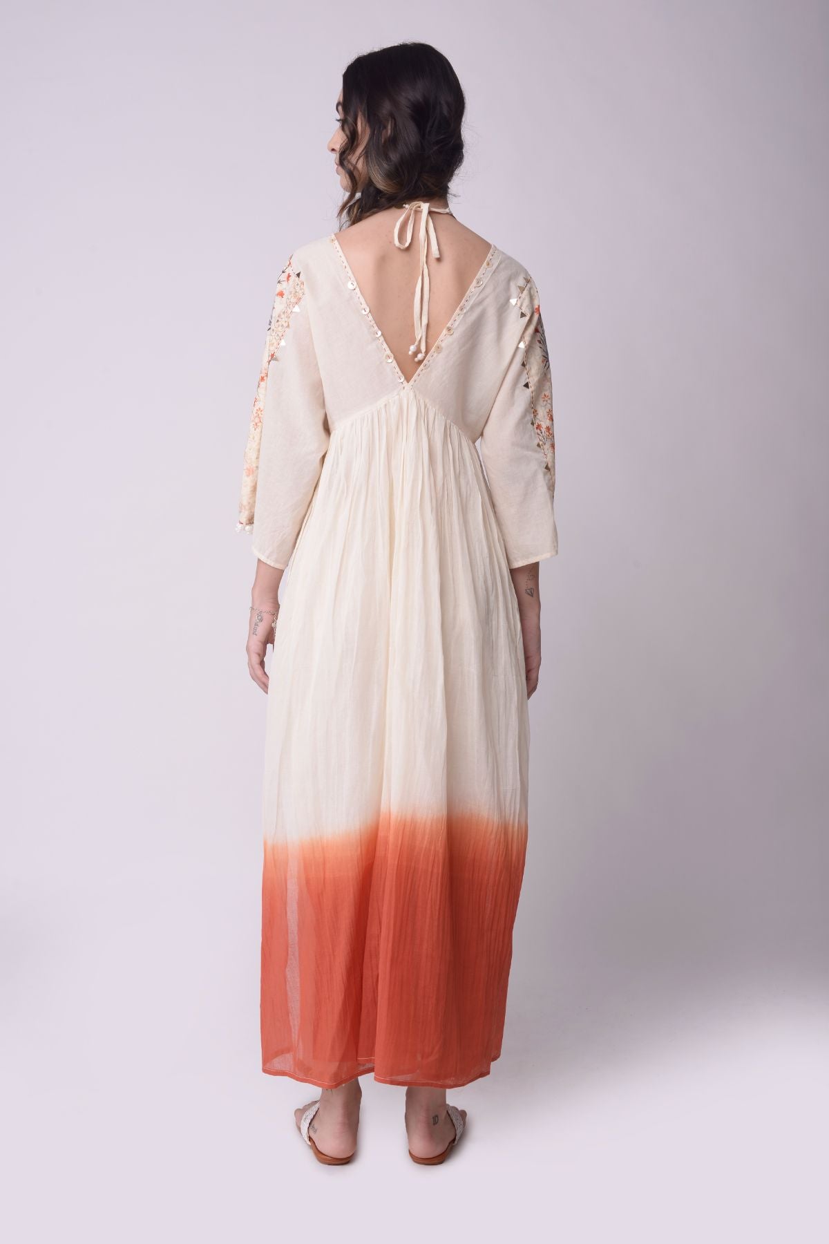 Ombre kaftan kurta with cropped pants and patch dupatta.