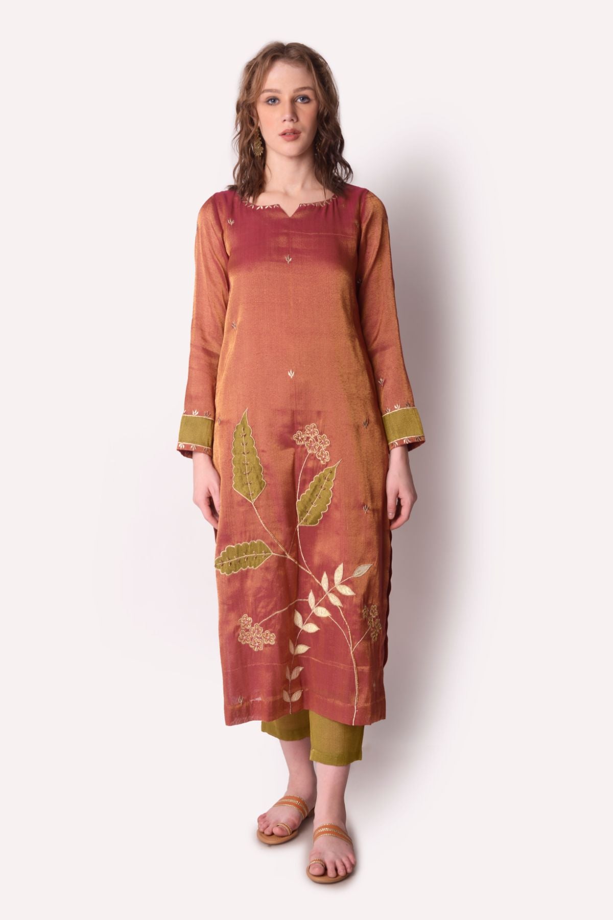 Patchwork Tissue Straight Kurta Paired With Cropped Pant Set