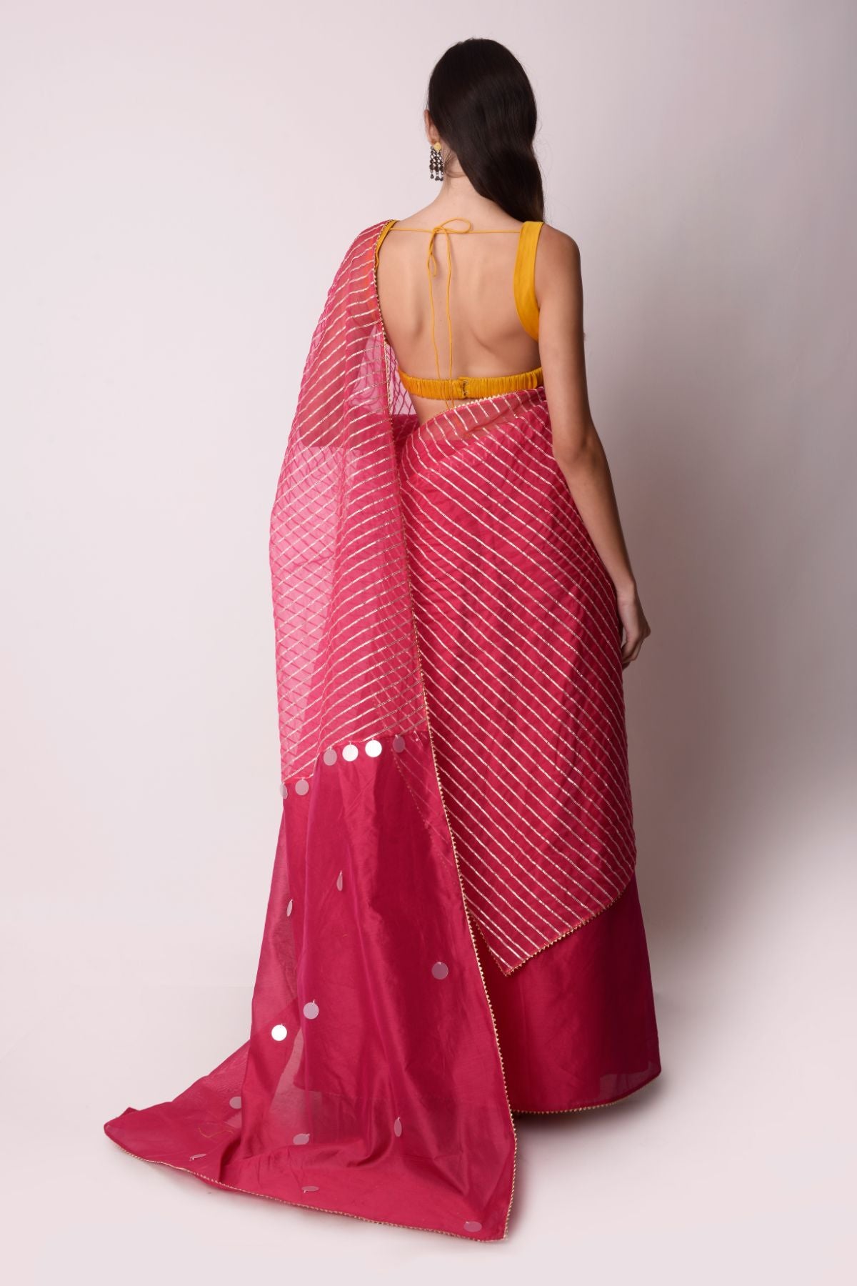 Color: Fuchsia/MustardFabric: Organza/Chanderi