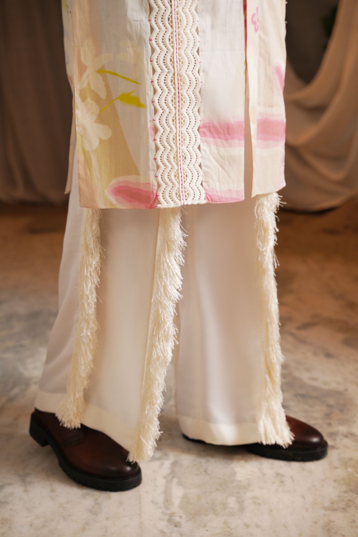 Scalloped Lace Stripe Valley Kurta With Fringe Pants